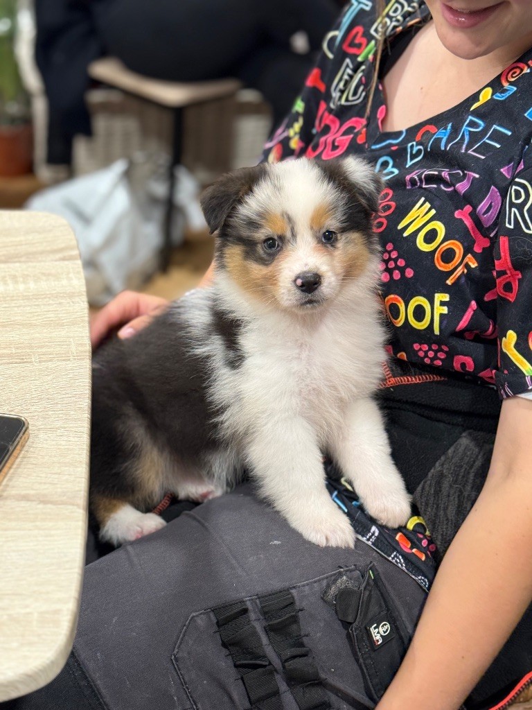 Femelle bleu merle queue courte, disponible à partir du 26 octobre.